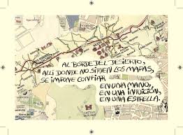 En efecto, esa dicotomía continua que se apoya formalmente en los recursos de repetición, ese «enfrentamiento» entre el paisaje y el hombre, el nómada y el sedentario, lo autóctono y lo extranjero, nos conciencia de estar situados en una frontera, «en un puerto / entre dos continentes» —el poema «Tánger (II)» se subtitula precisamente «Entre una cosa y la otra»; y el dedicado a Alhucemas, «Hoja perenne versus los nombres del poder»— que no es tal, sino revelación de las múltiples facetas del mundo y sus formas de expresarlo. En este extenso camino de las palabras, cada paso es de por sí un viaje donde el Verbo tiende sus puentes —«la hermosura de un puente / está en que hay dos orillas», dice en «Río Draa. Manifiesto»— para que conozcamos «el corazón de todas las ciudades / en su común idioma» —al «Idioma» se dedica «Rabat VII»—, para que entendamos que «se viaja / para encontrar umbrales» como se escribe poesía para derribar barreras y plantear preguntas. Para mostrar al peregrino-lector esas señales que devienen símbolos por la propia esencia de la travesía, signos y runas que el paisaje devuelve y el ojo siente e interpreta. Para confirmar que lo importante es el camino —véase al respecto el poema-epílogo—, que el camino es el vivir y es el camino el ser, y de ahí que, leídas Las señales…, no se cierre el poemario, sino que se complete con siete postales-poemas visuales más «La historia desde el punto de vista de los nómadas», prolongando, de ese modo, nuestro vagar abierto, nuestro aprendizaje del desasimiento.